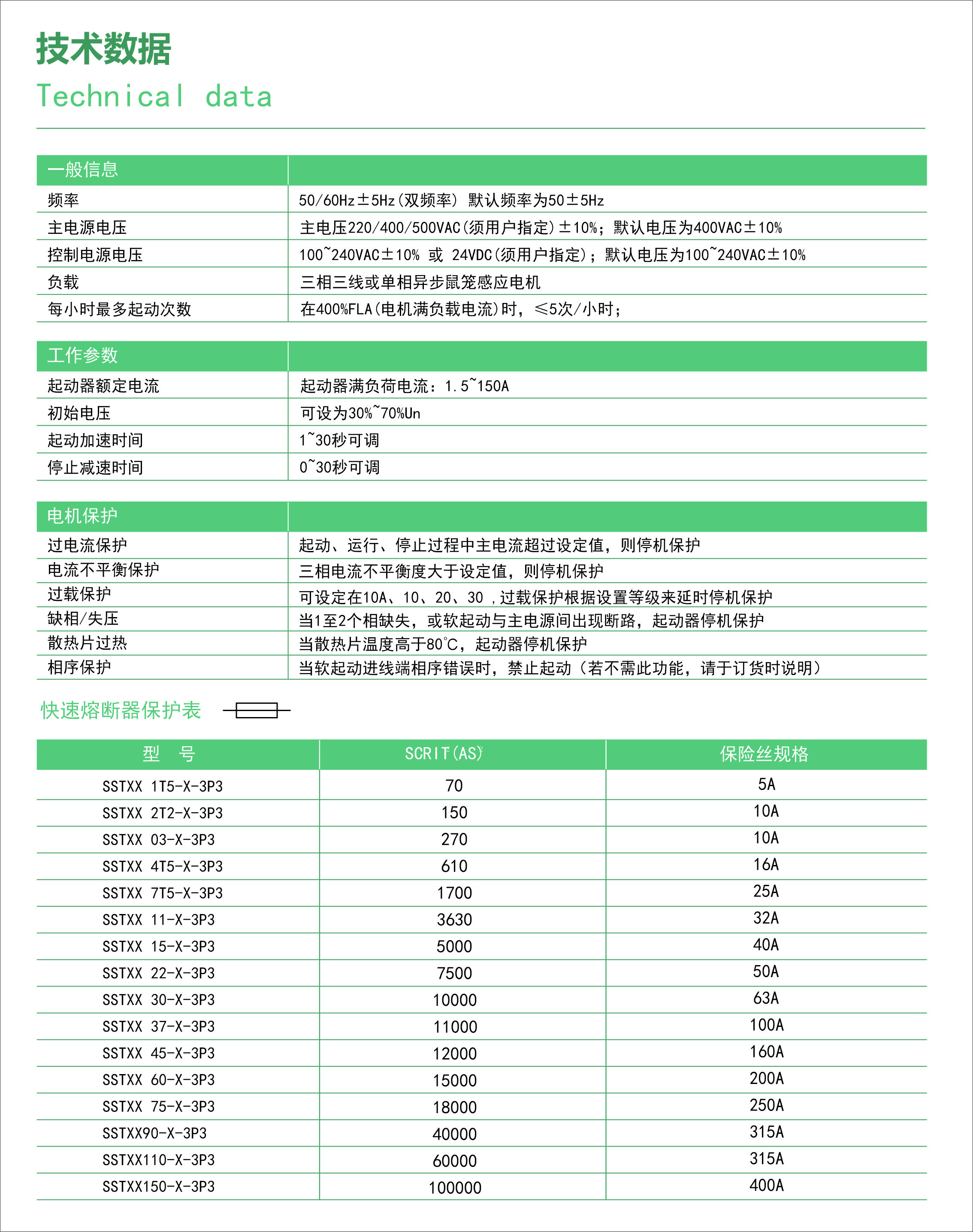 SST系列软起动器的保护功能: